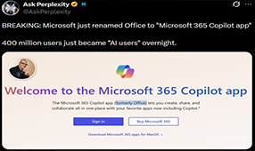 此前,X平台上出现了几篇广泛传播的帖子,特别是Perplexity AI发布的帖子,声称微软已弃用Office品牌,并称一夜之间有数百万用户转向了人工智能。随后,微软对此进行了澄清。