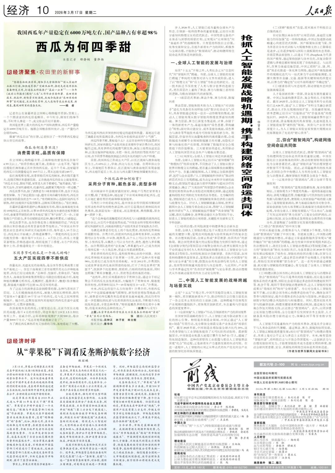步入2026年,人工智能已成为重构全球生产力形态、引领新一轮科技革命的重要变量,正经历从数字感知向物理交互的范式跃迁。中国凭借完备的产业体系与深厚的场景红利,正实现从“应用领先”向“基础补齐”的战略转型。只有坚持科技自立自强,统筹发展和安全,在提升新质生产力的同时,积极参与全球治理,才能弥合“数智鸿沟”,推动构建网络空间命运共同体迈向新阶段。