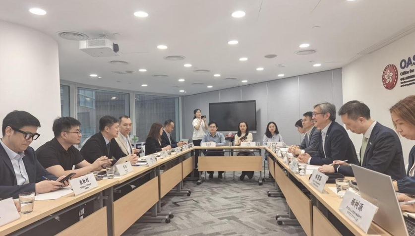 4月15日,中网投一行拜访香港引进重点企业办公室,引进办主任任景信、执行总裁彭文俊及多位业务负责人出席交流。